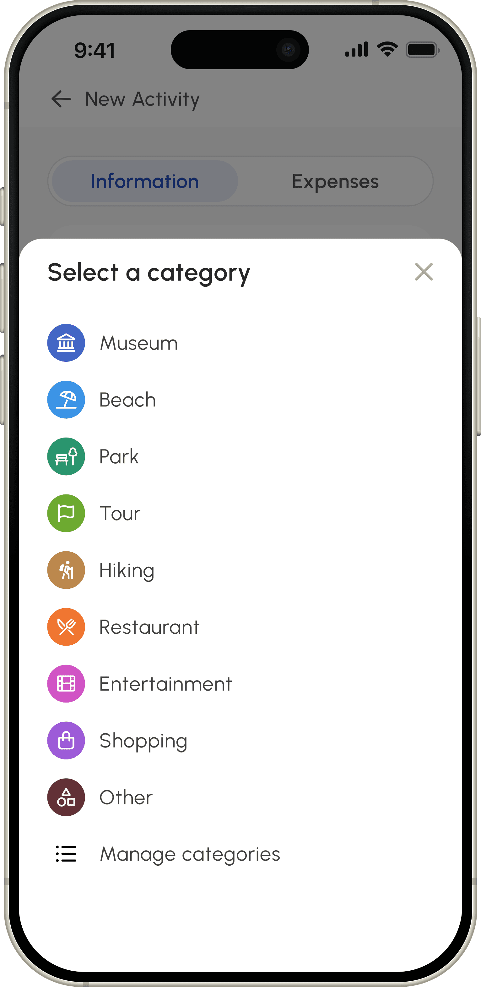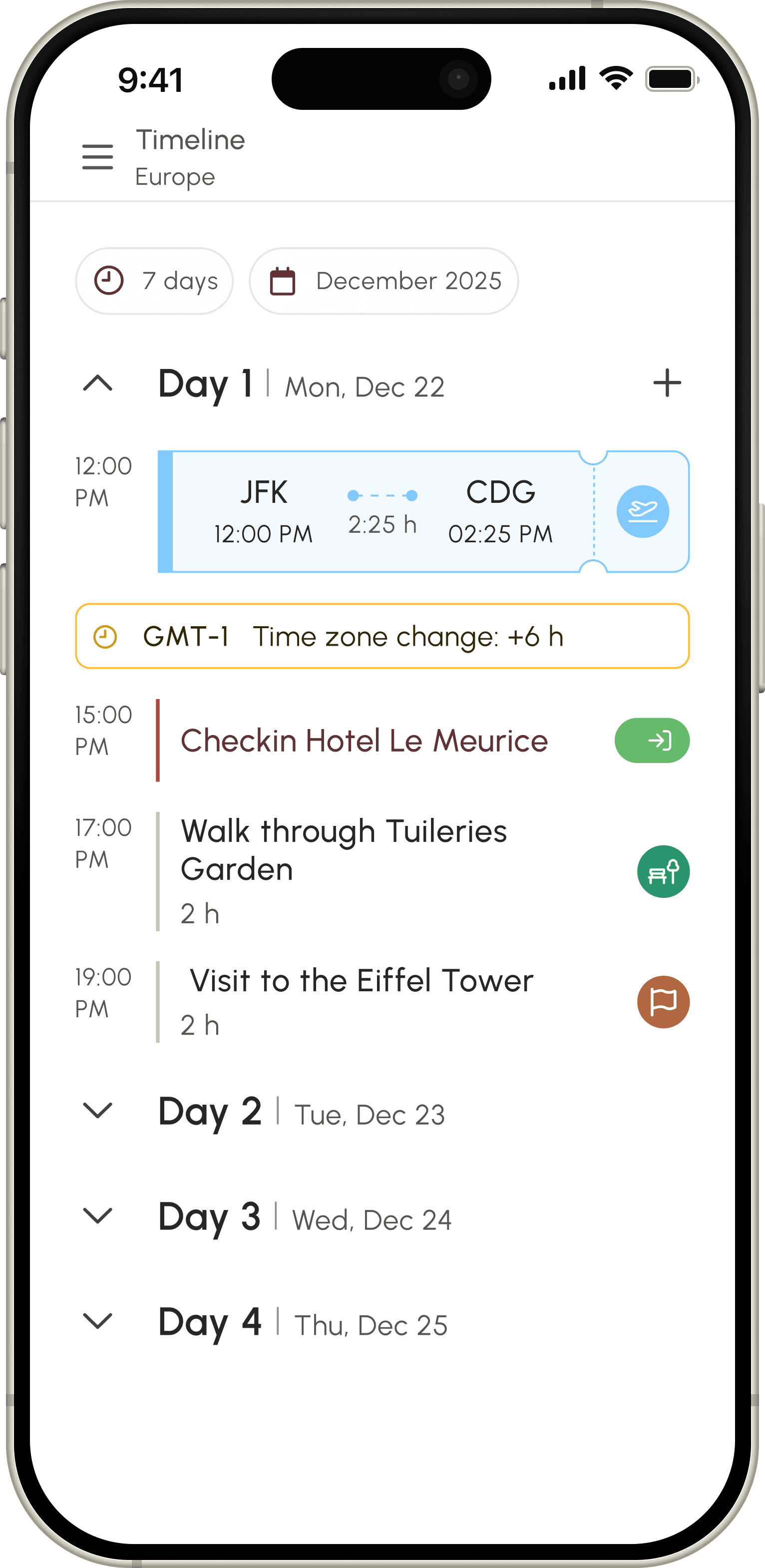 Not every part of a trip is a booking. Add your own custom activities—from a sunrise hike to a family dinner—and organize them exactly how you want.